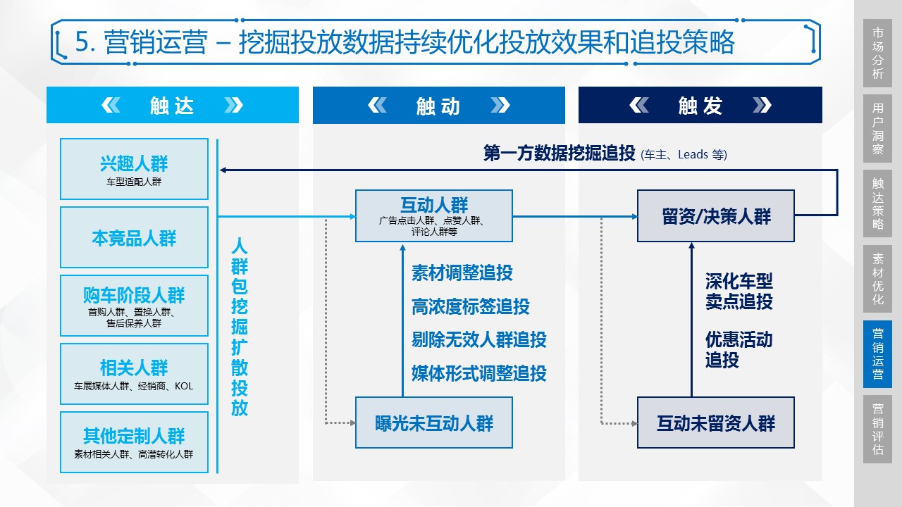 传统方式用“饱和打击”获得广泛覆盖,但汽车行业恰恰很难利用饱和打击奏效,既是因为今天的互联网资源已经难以支撑理想的“饱和打击”,再加上今天的汽车营销竞争强度空前加剧,任何单一品牌都很难获得足够排他的广告展示与受众印象;也是因为真正的汽车消费者必须具备两个特征:消费意愿和支付能力,这类稀缺人群也根本不可能适合用只剩下“蜻蜓点水”般覆盖能力的“饱和打击”来真正影响。