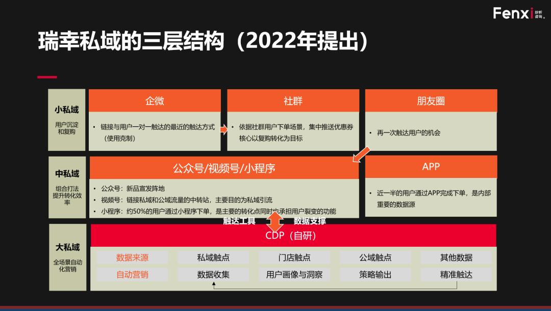 在消费者经营上,极度简化了自己的私域运营,只抓“龙筋”、只抓“要害”。在这一点上,很多PR文章所渲染的瑞幸并不是真实的瑞幸,真正的瑞幸私域以及社群经营,是在策略上的高度聚焦,以及在执行上的高度标准化可复制。即用短链快运营的方式,提升消费者的复购与到店消费。