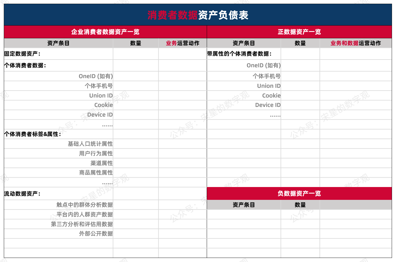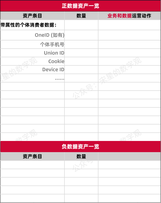 数据资产负债表可以表直观的展示企业现在手里的消费者数据到底能不能起到上面提到的两种应用方法。如果能,有多少能,有多少数据不能。