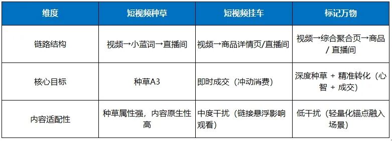 标记万物的核心作用之一,是实现 商业内容轻量化。与直接在短视频中挂车、引流直播间相比,它能保留更好的内容原生体验;而与传统短视频种草相比,点击标记这一行为是更具价值的用户意图信号 —— 点赞、评论属于弱兴趣信号,直接下单是 滞后转化信号,点击标记则恰好填补了种草环节中中间价值数据的空白。