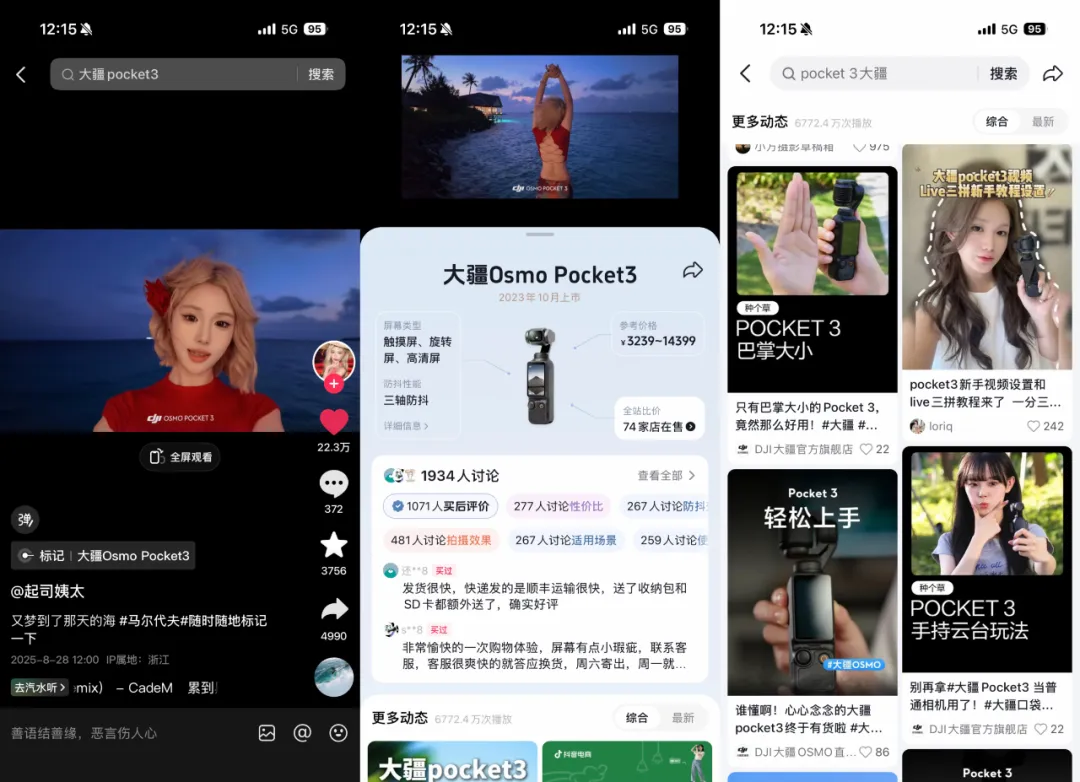 特别是适合中高客单和强场景属性的商品如:数码、家电、珠宝等。当用户点击标记时,它很明确地告诉商家,我是在哪个场景下对这个商品有兴趣。而点击吊起的综合页,汇集了商品参数 、历史评价、短视频和直播间,能进一步为用户种草补充断层的信息。