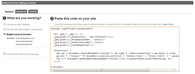 跨域监测是对Google Analytics而言的一个问题,Omniture并无此忧虑(当然,它有别的跟域类似的地方要注意)。对于Google Analytics而言,如果你要把不同的域(domain)或者子域(sub-domain)的所有监测结果放在一个 报告集合(profile)中,那么你就不能只是直接把不经处理的标准代码放到每个页面上。