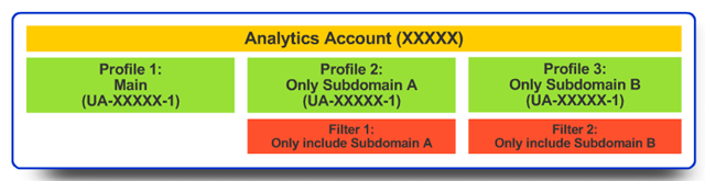 我们首先从GA上建立好一个profile,并且获取一套跨子域监测的代码。然后,把这段代码实施到网站所有的页面上。这之后,真正的tricks开始了。我们在GA报告的settings后台中复制刚刚建立的profile,有多少个子站就复制多少个,然后,做过滤,只留下各个子站自己的流量,过滤的方法请见这里