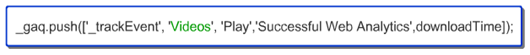 Virtual page方法需要用_trackPageview()函数来解决问题,语法是:“_gaq.push(['_trackPageview','/events/playvideo']);”,之后,这个事件会在content中的top content报告中以/events/playvideo为页面名出现。
