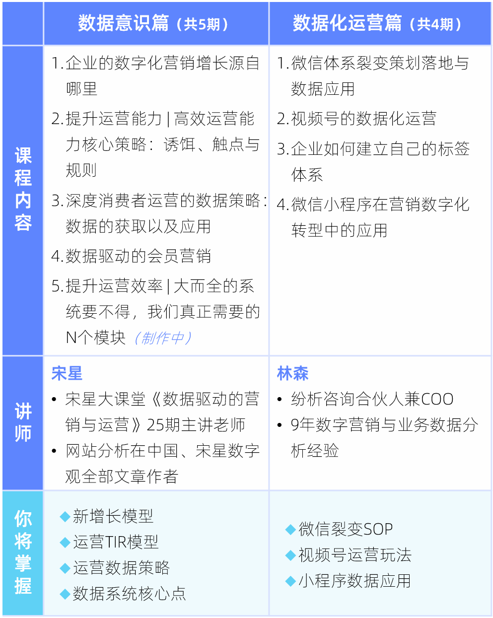 比起点对点的单次分享,我们想要通过系统化的知识输入:帮助大家构建正确的数据意识,清楚数据在数字营销中应用的可能性,以及如何应对行业变化做出能力上的更新。