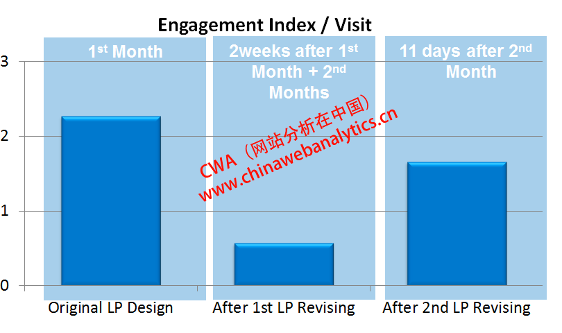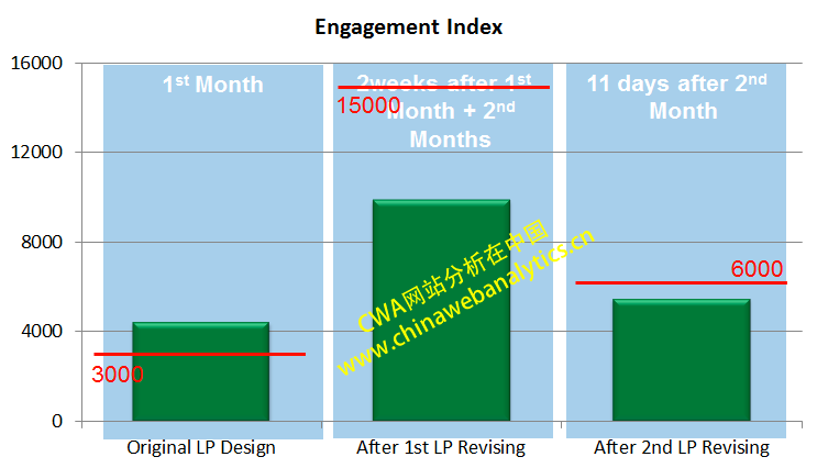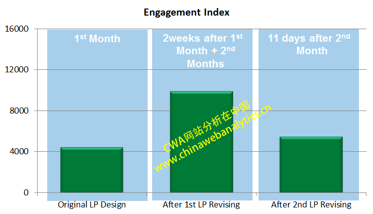 这是一个分为三个阶段的较为长期的营销活动。在不同阶段中,采用了不同的着陆页面。三个阶段分别产生的Engagement如下图所示: