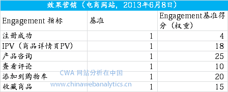 有意思的是,对于这个方法,你会发现——由于网站内部的转化也是一步一步发生的,不同过程对最终转化的价值并不一定一样,因此似乎也完全适用于Attribution Modeling的方式,采用不同的modeling(如线性,还是递减,或是中间高两边低)的方式,对用户不同行为的赋权值也就不一样,你完全也可以采用Attribution Modeling模型的思想根据实际情况去为不同的Engagement指标赋权,这样可以更接近于你期望的业务实际。不过操作难度看起来相当不乐观。;)