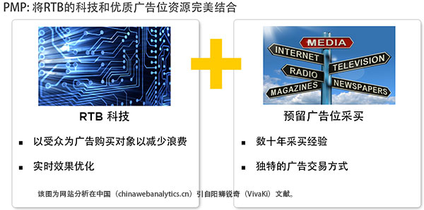 因此我们可以给PMP下一个定义,即它是将传统广告的私有的交易方式与程序化广告的工作方式相结合的新互联网广告形式。传统广告的私有交易有一个非常强大的好处,那就是广告位置都是在广告上线之前就必须确定好的。比如,大家在电视上看到的广告,肯定是早在好几周甚至好几个月前就被广告主预定下来的,不可能在广告要播出的那一刻,才由电视台到处询问谁要这个时间的广告。互联网上(尤其是PC上)的大多数广告也是同样如此。这种方式保证了广告在投放前已经完全确定了时间、位置和价格,不存在任何不确定性。人们当然喜欢这种方式,因为这种方式帮助广告主提前锁定了他们想要的资源。PMP的特征之一,就是要尽可能地保留这种方式,尽可能地消除人们讨厌的“不确定性”。