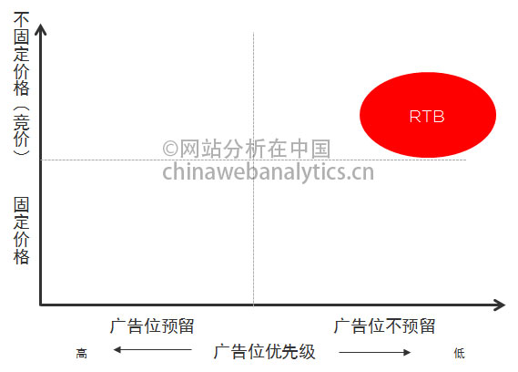 第二种,被称为Preferred Deals(优先交易),与第一种方式相比,情况略有不同。第一种方式下,广告位资源是广告投放前就锁定的,但在这种方式下,广告资源具有一定的不确定性。这个不确定性并不是指广告位不能被锁定,也不是指广告的价格不能预先谈好,而是指这个广告位的展示量,不能预先保证。什么意思呢,比如你看中了网站分析在中国(www.chinawebanalytics.cn)的这个博客上的某个广告位,这个广告位碰巧是按照CPM方式出售的。由于我的网站的流量每天都不一样,有时候多,有时候少,因此这个广告位上广告的展示次数不能预先确定,这就意味着尽管广告位可以卖给你,但是展示量却保证不了,这样你在我这个广告位上做广告的预算就不能精确预知了。
