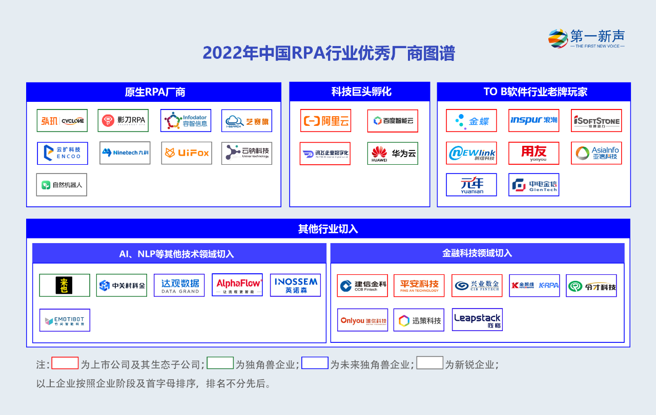 • AI/NLP等其他技术领域切入厂商:比如来也科技是从AI领域起家,后切入RPA赛道;