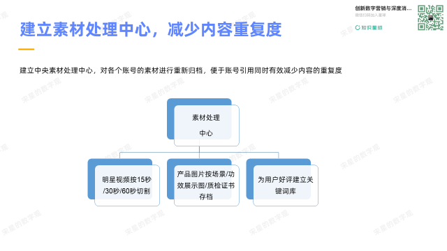 首先是内容上的升级,包括内容的形式,最初期较好复刻的图文笔记转向视频笔记;内容的本身,增加真实场景避免产品的单一化展示。如在穿搭视频中推荐防晒口罩,在宠物互动视频中植入猫粮等;如另外是建立素材处理中心,将全部的内容进行归档,便于多账号的引用同时减少内容的重复度。
